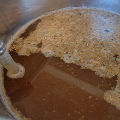 Filtrer et rincer les drêches avec 16.8 L d'eau à 75.0°C