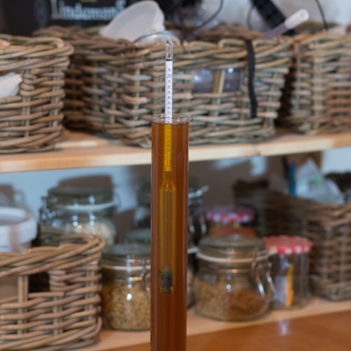 Le vieillissement fait également partie du style et les saveurs évolueront au fil du temps. Nous nous sommes fixés 8 mois d’attente avant toute dégustation pour lui laisser le temps de s’affiner et qu’elle ne soit pas trop jeune. L’idéal est de la goûter de temps en temps et de retenir l’affinage qui nous plaît le plus, à savoir que ce sont des bières qui peuvent se garder pendant des années si les conditions de conservation sont respectées (une température stable et fraîche, à l’abri de la lumière).