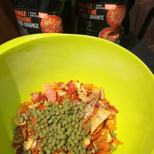 Pour ce qui est de l'orange sanguine, tu l'as fait toi même? séchées ou fraiches les écorces?