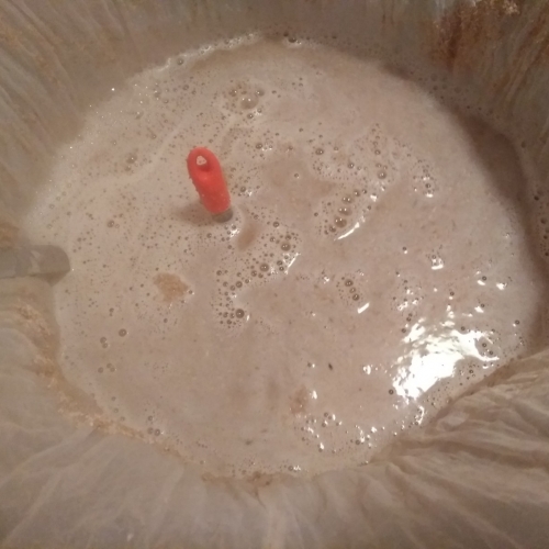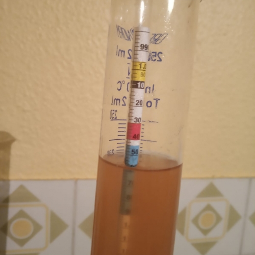 Dès la densité finale atteinte et stable pendant 3 jours (1.013) j'ajoute les houblons en houblonnage à cru pour une durée de 5 jours. Je cold crash pendant 3 jours à 4°C et j'embouteille à 7g/l. Je fermente à 18°C extérieur pour anticiper la hausse de température lors de phase tumultueuse.- 0