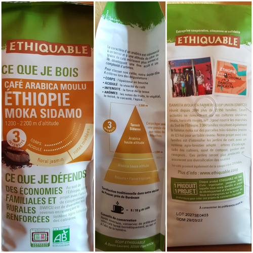*Coffee : aromatisée au café Moka Sidamo d'Ethiopie (moulu) par infusion en post ébullition.