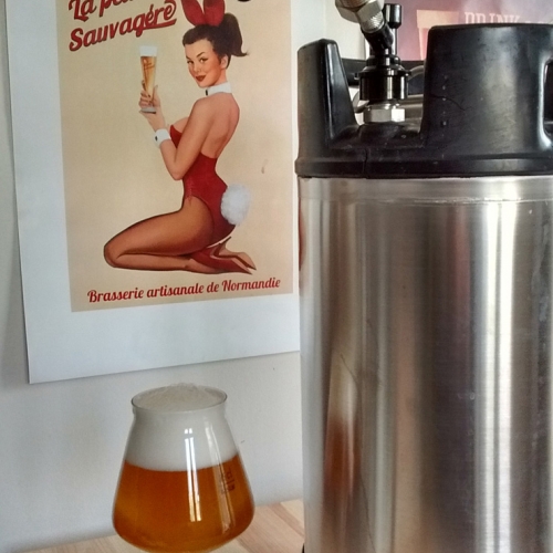 Recette test réalisée pour la mise en fut en soda keg de 11l. A noter l'utilisation de houblon Cascade perso cultivé sur place. La levure sèche de fermentation basse est périmée de 3 mois mais la fermentation a démarrer quelques heures après inoculation. Cette bière subira également une carbonatation forcée à la mise en fut.