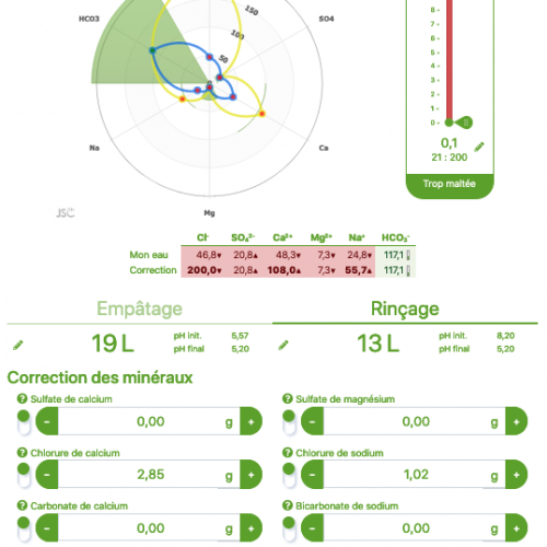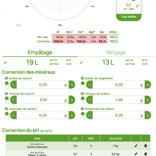 1er test un peu sèche, amer et légèrement acide. Donc correction pour la rendre plus smooth, peux être faut il tendre sur la levure verdant ipa pour un meilleur rendu.