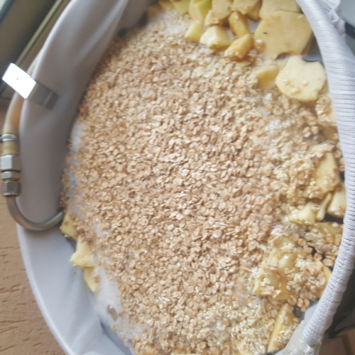 ajout de la pomme en morceau dans l empatage pour transférer les gouts et le sucre...